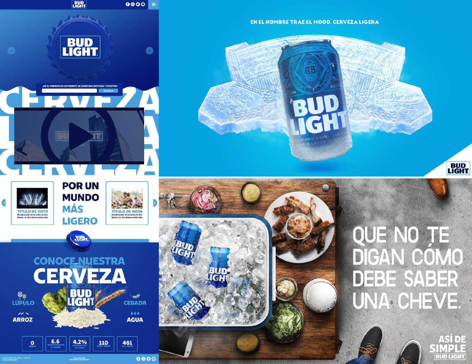 A collection of works done while being Art Director for Bud Light Mexico involving web design, social media content, packaging and key visuals for campaigns and festivals.