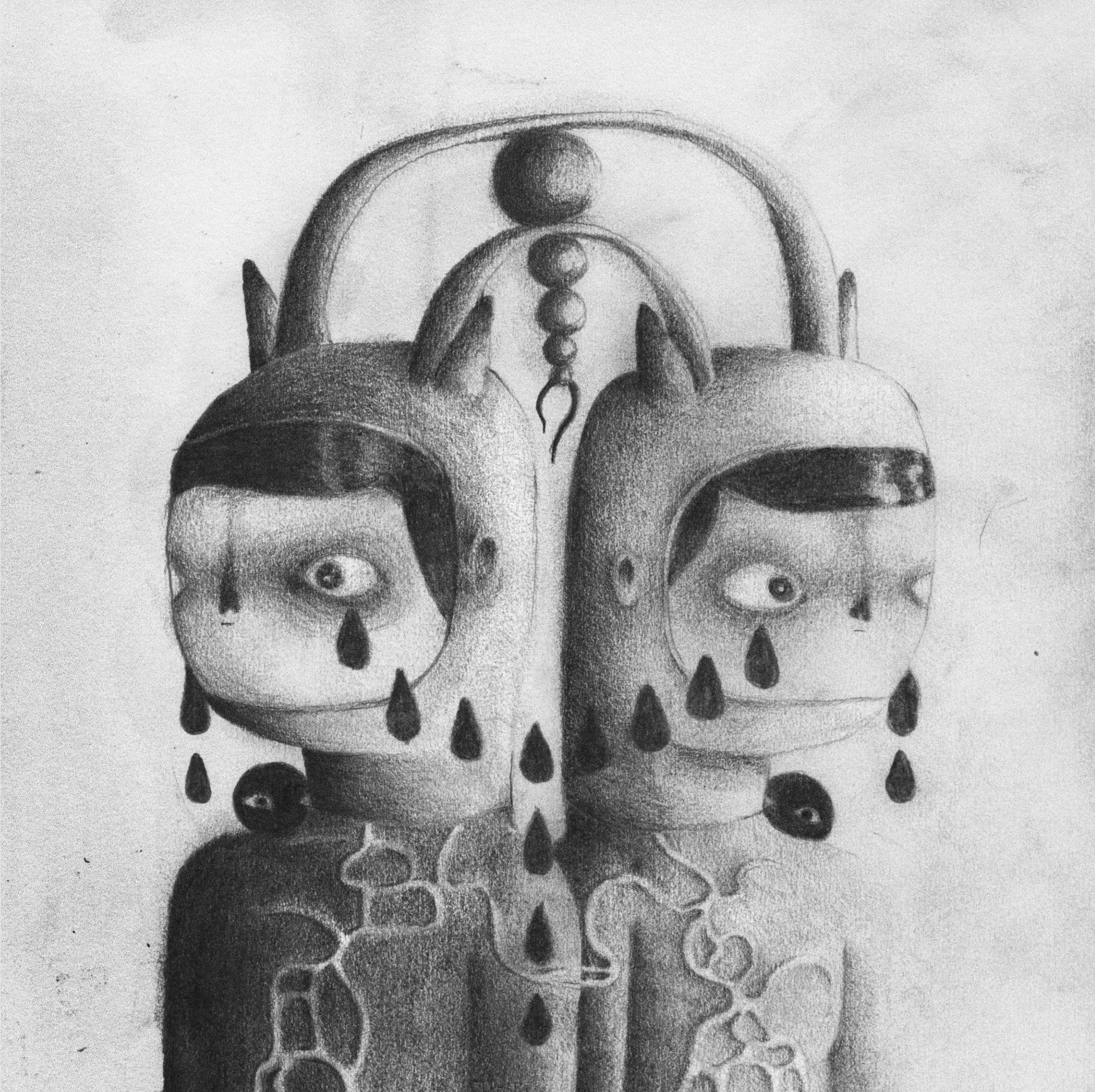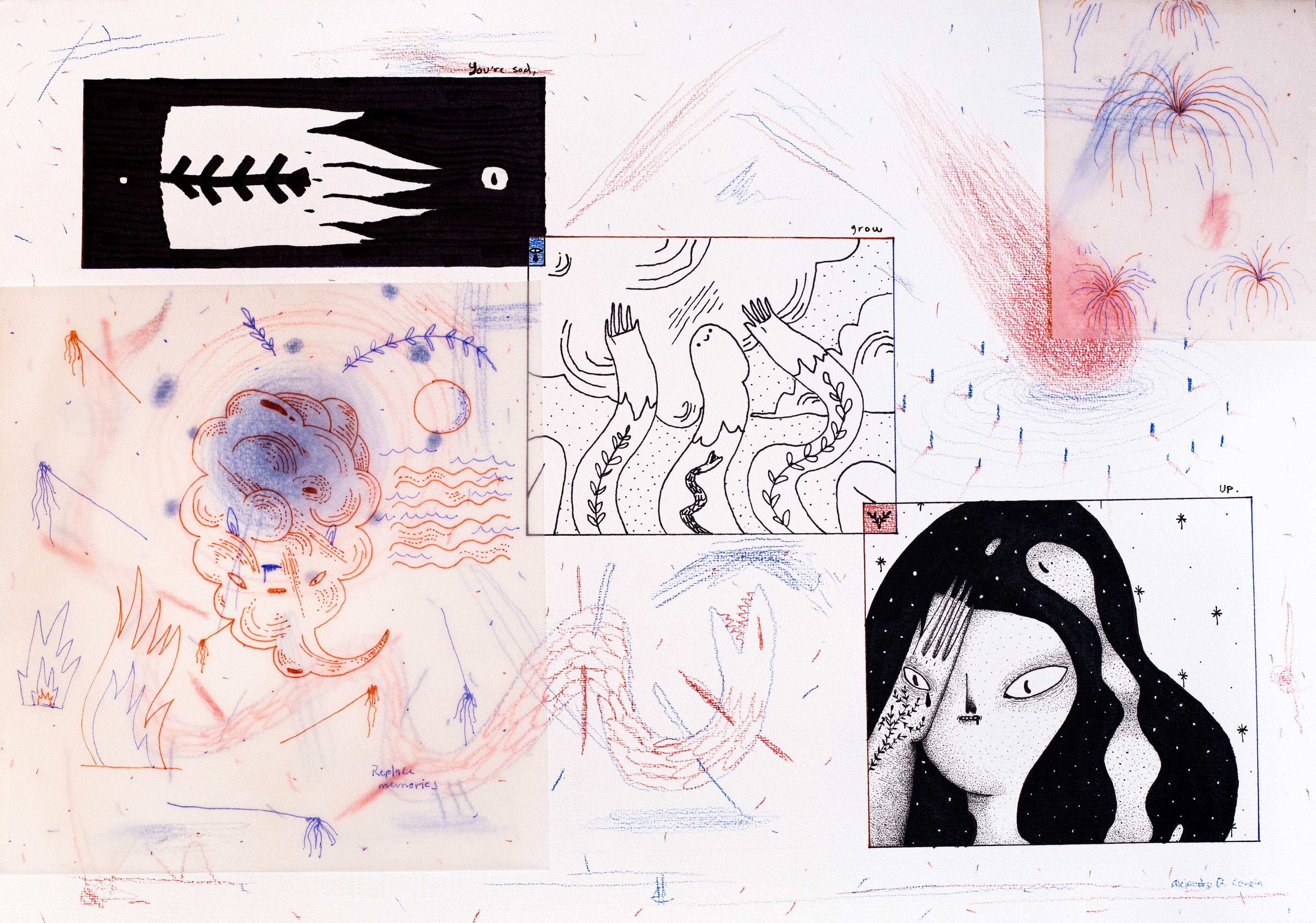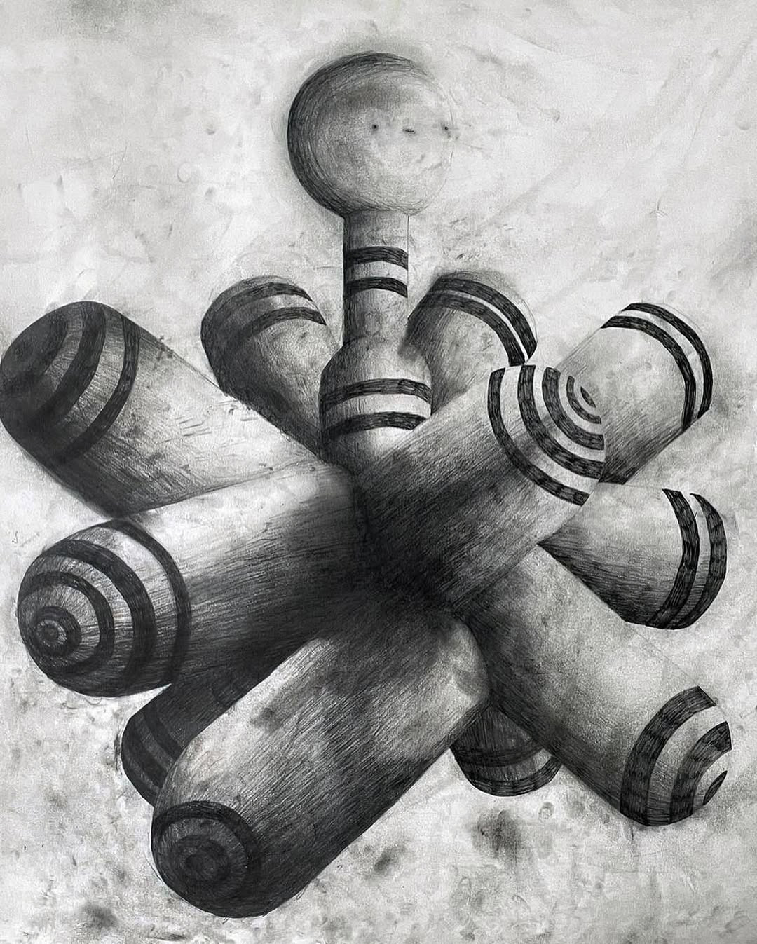 A collection of large and small format drawings made with mechanical pencil on paper.
